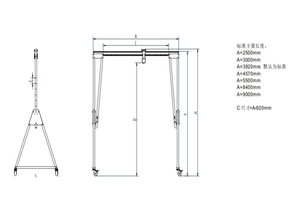 There are two main types of small lifting gantries: one is a fully mobile gantry with braked load-bearing wheels, suitable for ground-level lifting. The other is a fixed gantry mounted on rails on a floor or beam, utilizing an electric or manual hoist for mechanized lifting. This reduces manpower, lowers production and operating costs, and improves work efficiency. Our company can customize products based on customer site requirements. Mobile gantry hoists can be equipped with either a hand chain hoist or an electric chain hoist, offering high practicality and proven technology, making them highly popular with manufacturers.