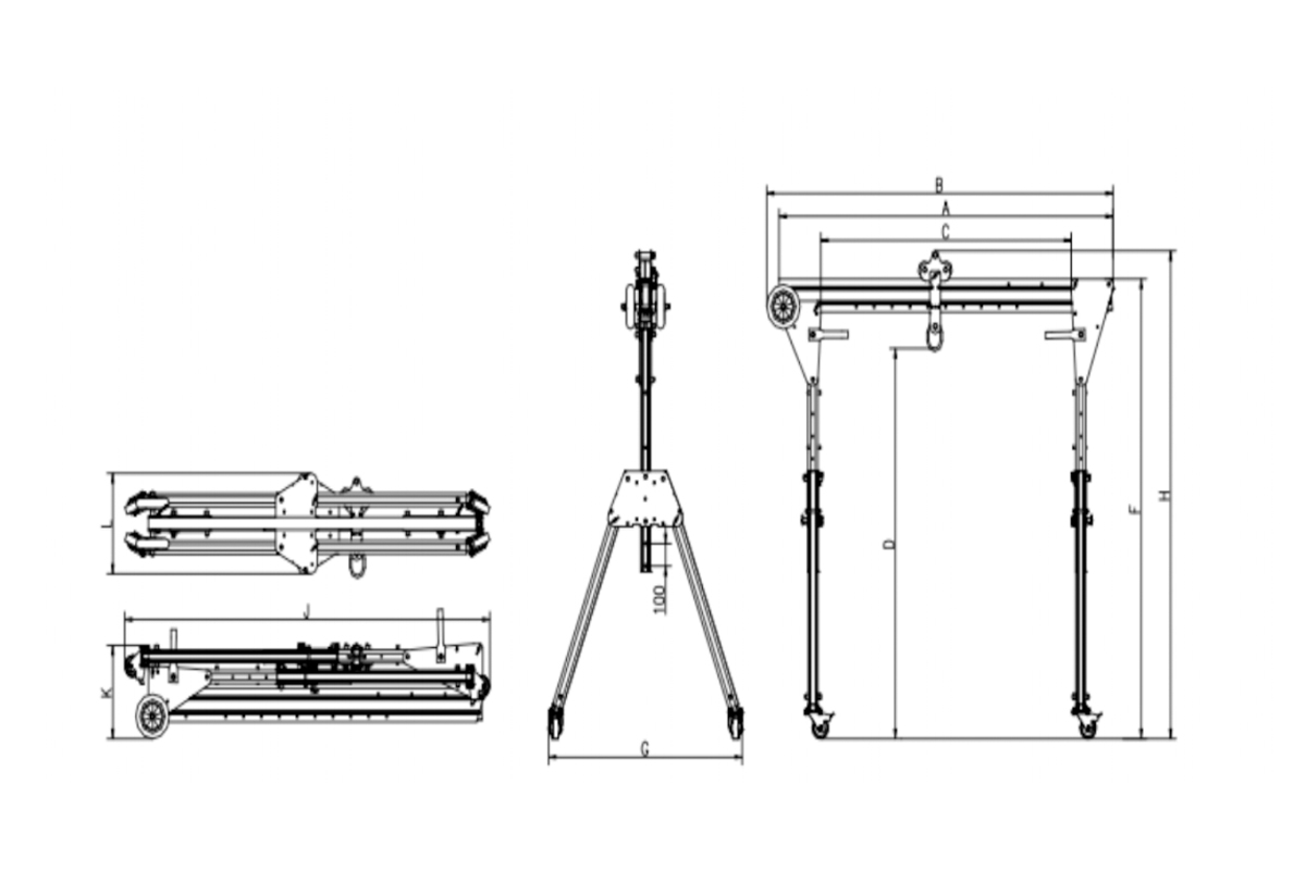 The advantages of mobile gantries are their omnidirectional mobility, quick disassembly and installation, and minimal footprint, allowing them to be moved to another location using a minivan. Their adjustable width and height, along with their well-designed steel frame, can withstand loads ranging from 100 to 5,000 kg. They are particularly suitable for the installation, handling, and commissioning of workshop equipment, loading and unloading cargo from vehicles, and lifting large engine components in auto repair shops.