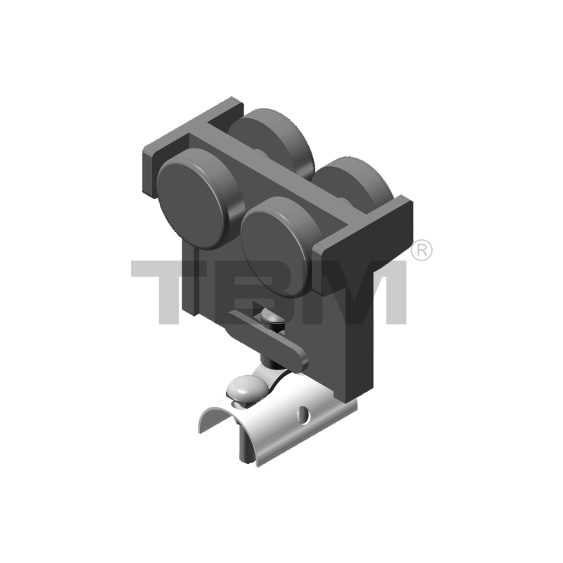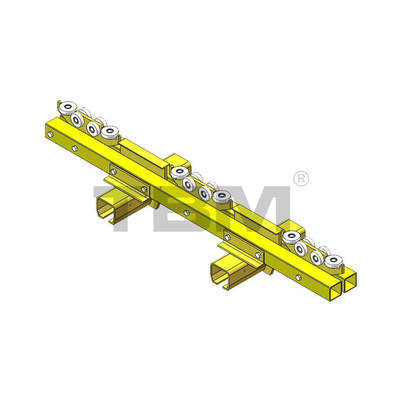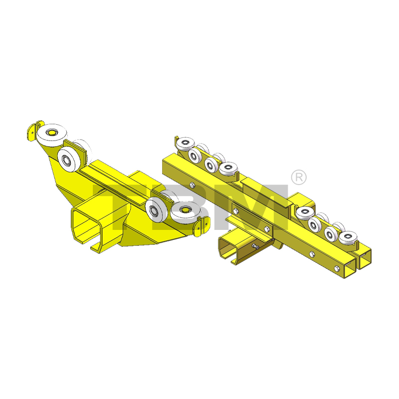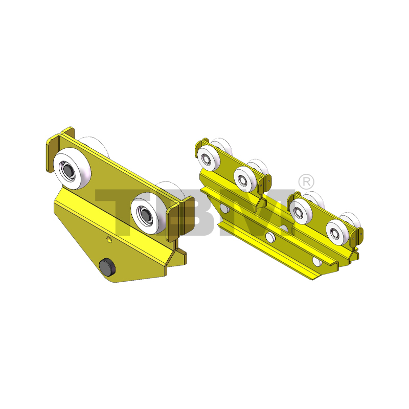 █The main beam trolley is used for hanging lifting mechanisms, etc. Its wheels are made of high-strength nylon and have a corresponding slope, allowing them to conform to the rail tread, ensuring smooth operation and automatic centering. Bent wings at both ends prevent the trolley from accidentally falling off the track, ensuring full safety.